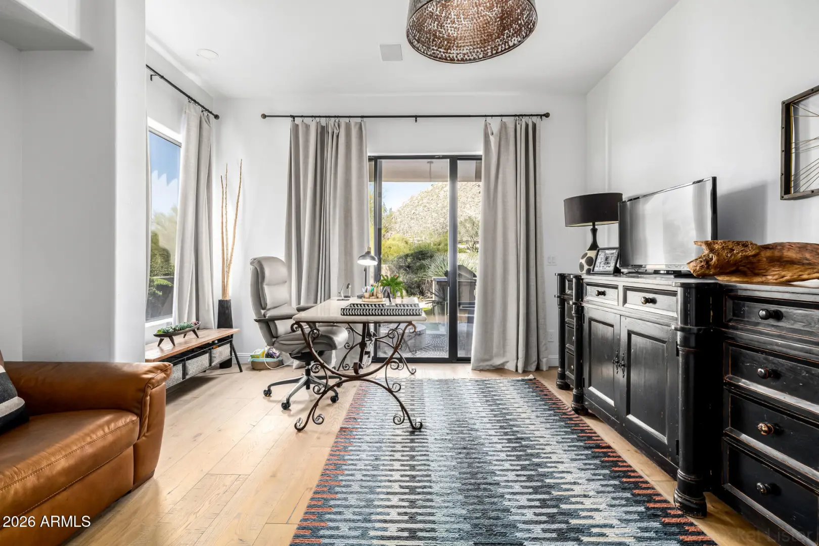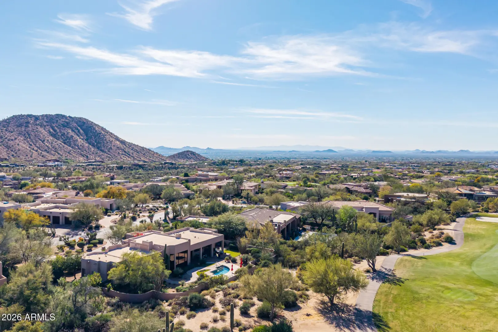 Welcome to tranquility. Step into your stunning custom home in the deluxe guard-gated community of Glenn Moor at Troon Village! Nestled on a peaceful cul-de-sac, this estate showcases a contemporary Santa Fe style that is the perfect blend of sophistication and hospitality. The impressive interior offers a well designed split floor plan with two fireplaces in the main living areas. The floor-to-ceiling glass wall frames an unobstructed view of Troon Mountain and world-class golf...onlooking the 17th hole at Troon Country Club. The gourmet kitchen is outfitted with Café appliances and provides a feeling and character that is both rare and difficult to replicate. Relax and unwind as the backyard oasis is yours. Enjoy the pool, BBQ, and ample sun and shade areas. New Trane AC units installed.
