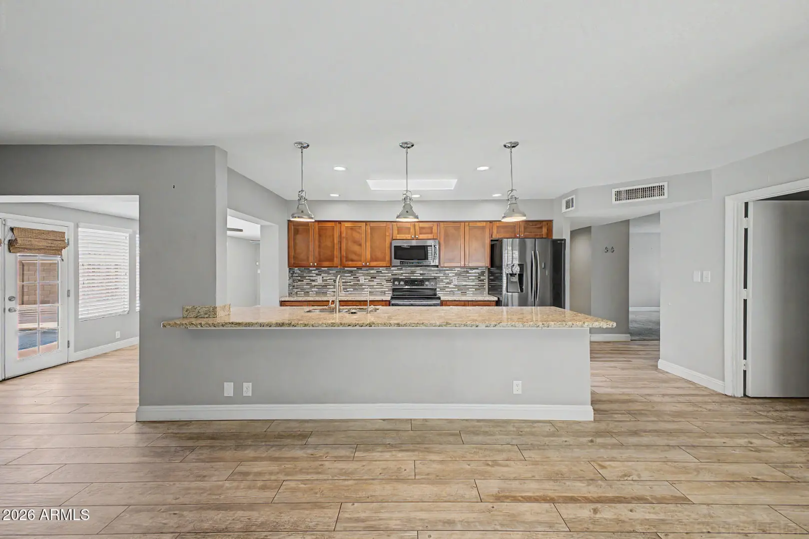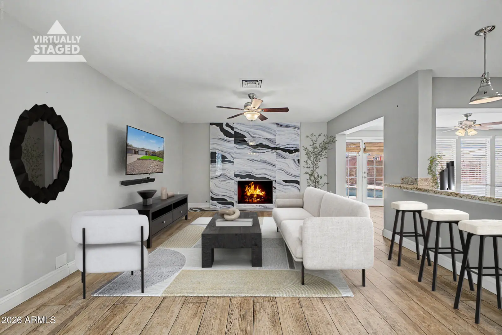 Tucked on a quiet cul-de-sac in an established Tempe neighborhood, this 3-bedroom, 2-bath home offers over 2,000 sq ft on an oversized lot. The flexible floor plan includes multiple living areas, a spacious kitchen footprint, and a bonus room ideal for office or media use. A thoughtfully enclosed, climate-controlled patio creates a bright sunroom seamlessly integrated into the living space. Updated windows with plantation shutters and a new HVAC system (2022) add comfort and efficiency. Leased solar will be paid off at closing with acceptable offer. The backyard features a pebble-finish pool, a pizza oven and room to create your ideal outdoor setting. Conveniently located near the US-60, Loop 202, shopping and dining!