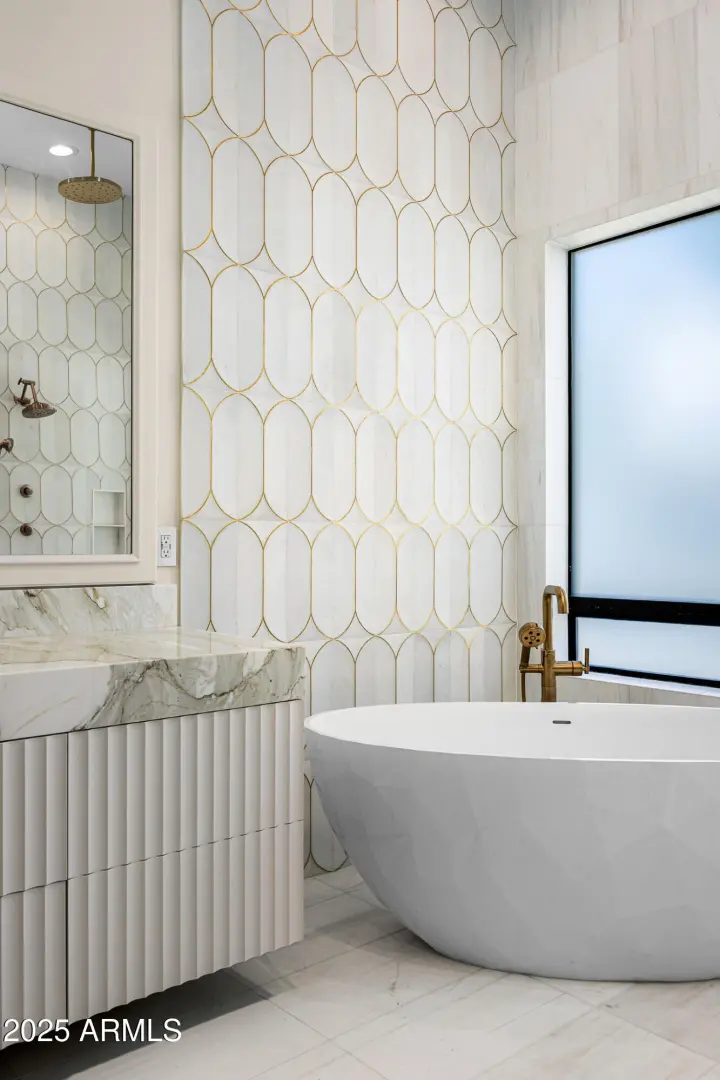 Welcome to the esteemed gated community of Merrill Cantatierra in the heart of Paradise Valley. This home will draw you in from the moment you step inside with a desirable open floor-plan featuring high ceilings, an oversized great room, living room, wet bar, formal dining, formal office/library and a chef's kitchen. With stunning new wood floors throughout, and two show stopping stone fireplaces, this sophisticated, modern home is perfect for everyone. The updated kitchen boasts a gorgeous quartz waterfall island, new appliances and fantastic views out to the private resort style backyard. This primary suite is the star of the show with the spa-like bathroom that invites you in. The private backyard embodies superb resort living with the following amenities- putting green, tranquil pool,